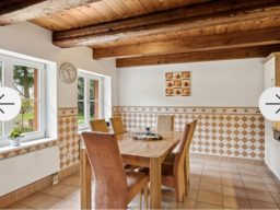Die Unterkunft befindet sich im Dachgeschoss und bleibt dank des traditionellen Reetdachs auch an warmen Sommertagen angenehm kühl. Hunde sind bei uns gern gesehene Gäste.